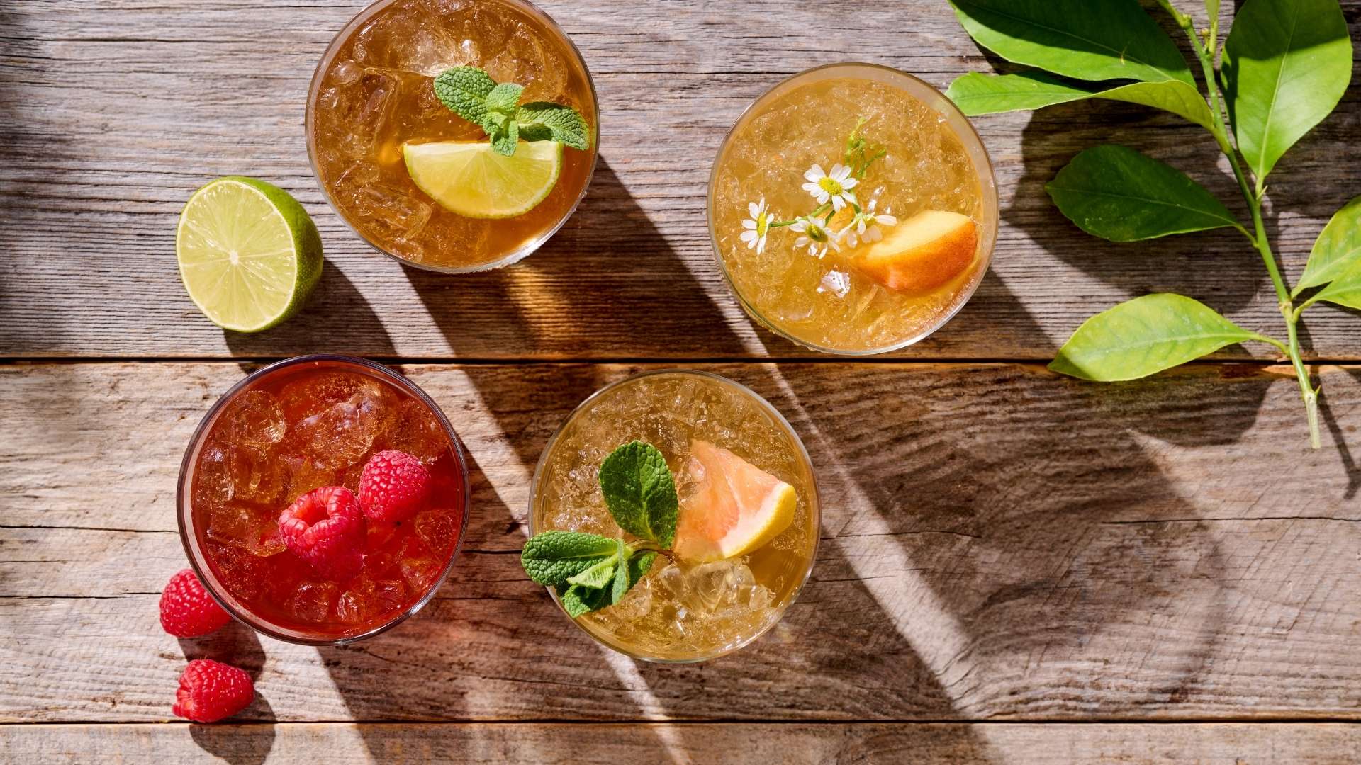 Unsere Sorten sind immer eine erfrischende Kombination aus naturreinen Tee-Extrakten, Früchten und Kräutern: