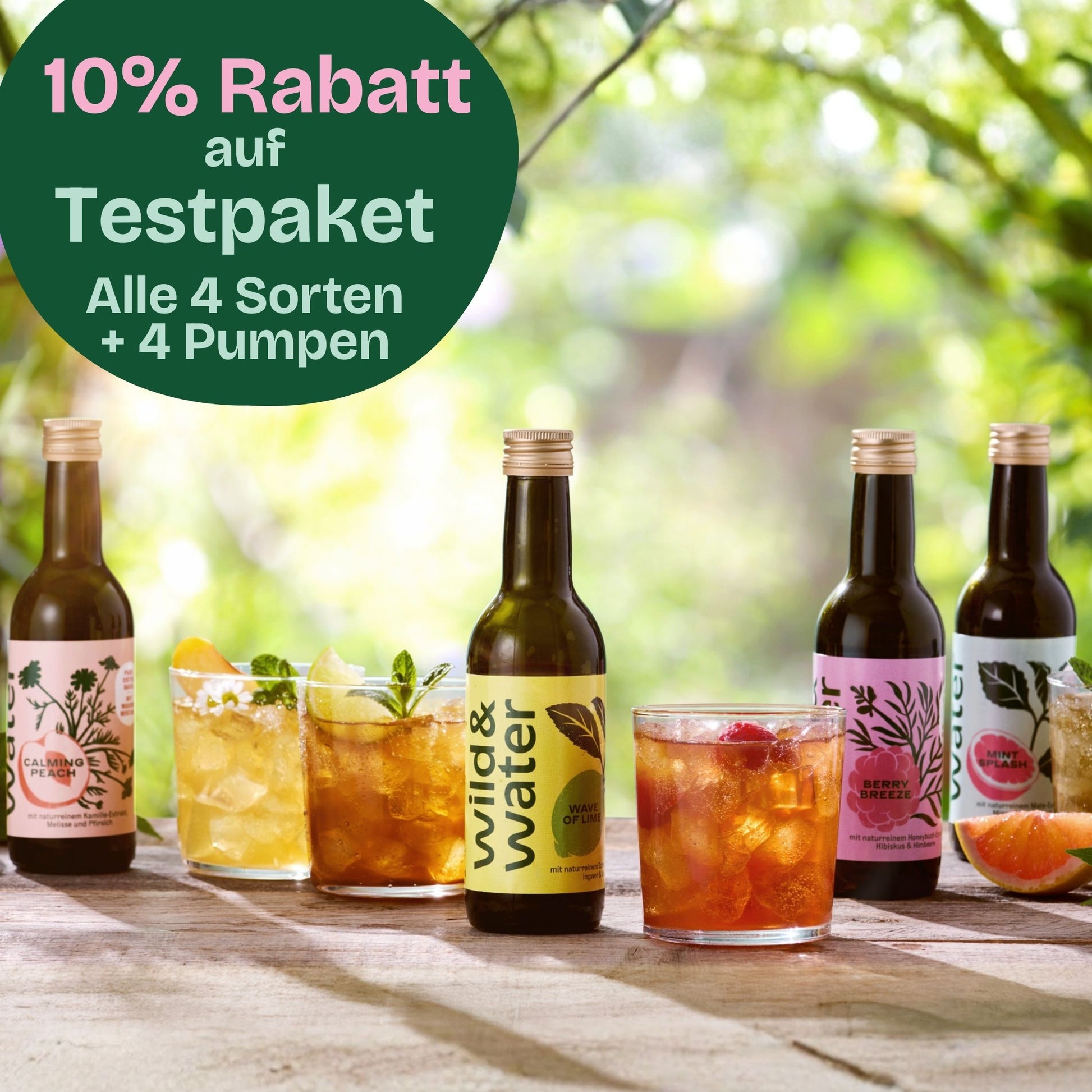 Natürlich erfrischen: Entdecke alle vier Wild&Water Sorten inkl. Pumpverschlüsse mit 10% Aktions-Rabatt